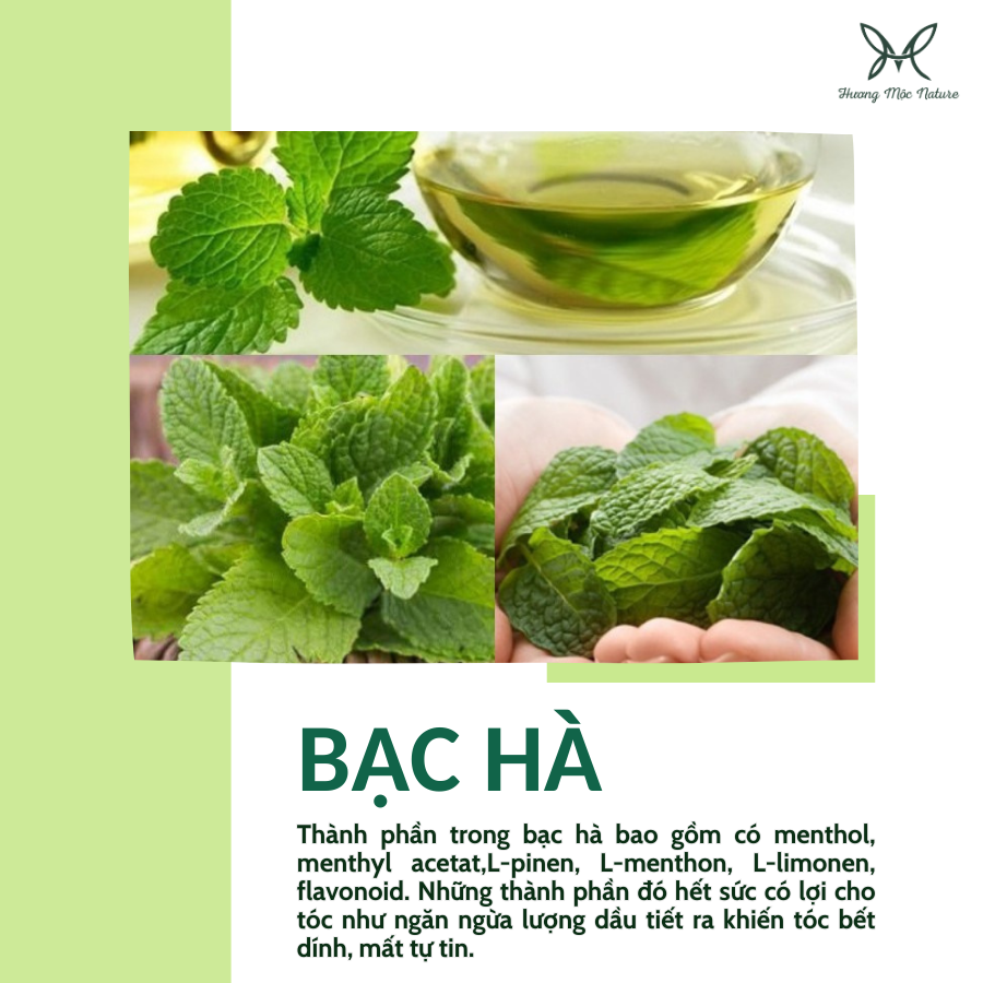 Bạc hà, với thành phần đa dạng như menthol, menthyl acetate, L-pinen, L-menthon, L-limonen và flavonoid, mang đến nhiều lợi ích quý báu cho sức khỏe và sự đẹp của tóc.
