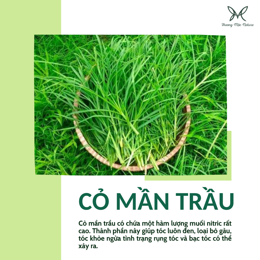 Cỏ mần trầu chứa hàm lượng muối nitric vô cùng cao, một yếu tố quan trọng giúp duy trì sự đen mượt tự nhiên của tóc. Thành phần này không chỉ ngăn ngừa gàu mà còn bảo vệ tóc khỏi tình trạng rụng và bạc tóc sớm.