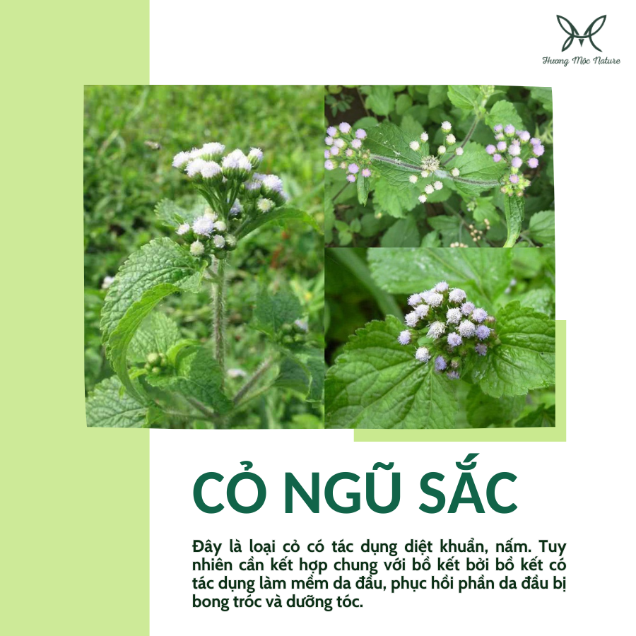 Cỏ ngũ sắc có tác dụng diệt khuẩn và kháng nấm. Những tính chất này giúp kiểm soát vi khuẩn và nấm gây ra các vấn đề da đầu như gàu và nấm ngứa. Đồng thời, cỏ ngũ sắc cũng có khả năng làm sạch sâu da đầu, loại bỏ tế bào chết và bã nhờn, giúp da đầu cảm thấy tươi mát và sạch sẽ.