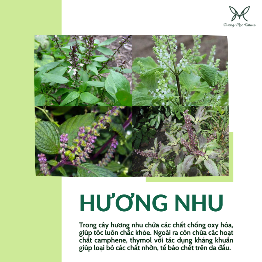Thảo dược hương nhu, từ lâu đã là một nguồn tài nguyên quý báu được sử dụng để làm nước gội đầu và nước tắm trong thực hành chăm sóc sức khỏe. Hương nhu chứa một lượng tinh dầu thơm nhẹ, mang lại cảm giác dễ chịu, cùng với các chất chống oxy hóa, giúp bảo vệ sức khỏe của tóc.