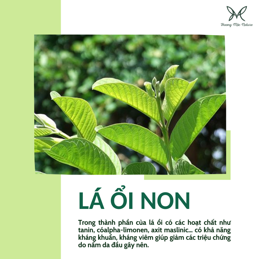 Lá ổi, với các hoạt chất như tanin, alpha-limonene, axit maslinic và nhiều dưỡng chất quý giá khác, không chỉ có tác dụng kháng khuẩn và kháng viêm mạnh mẽ cho da đầu.