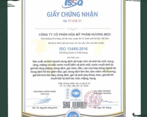 Hương Mộc đã đạt được chứng nhận ISO về tiêu chuẩn chất lượng sản xuất gia công trang thiết bị y tế loại A